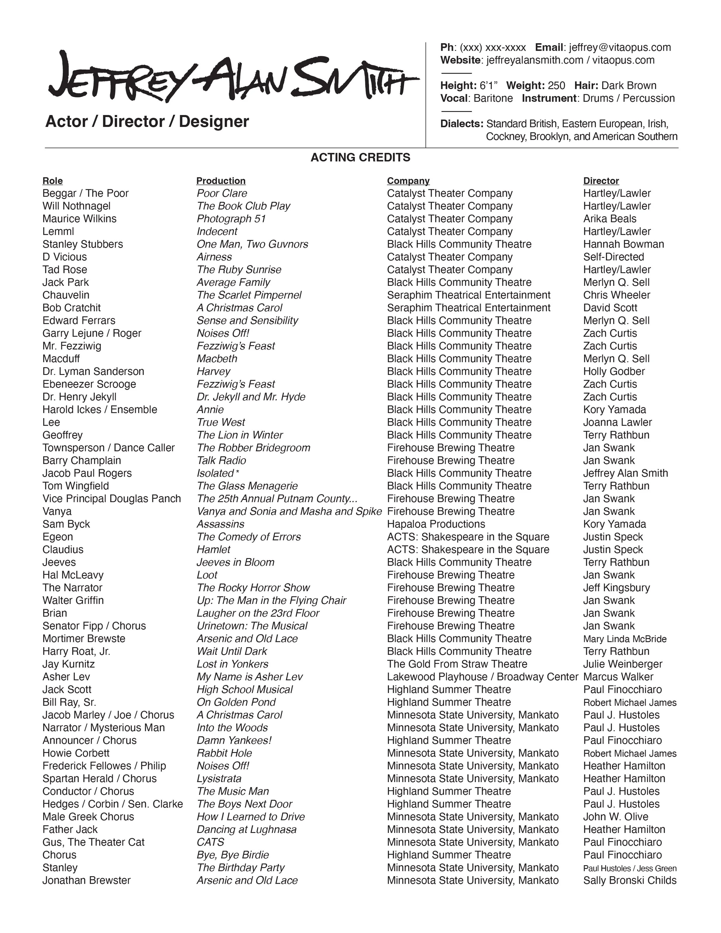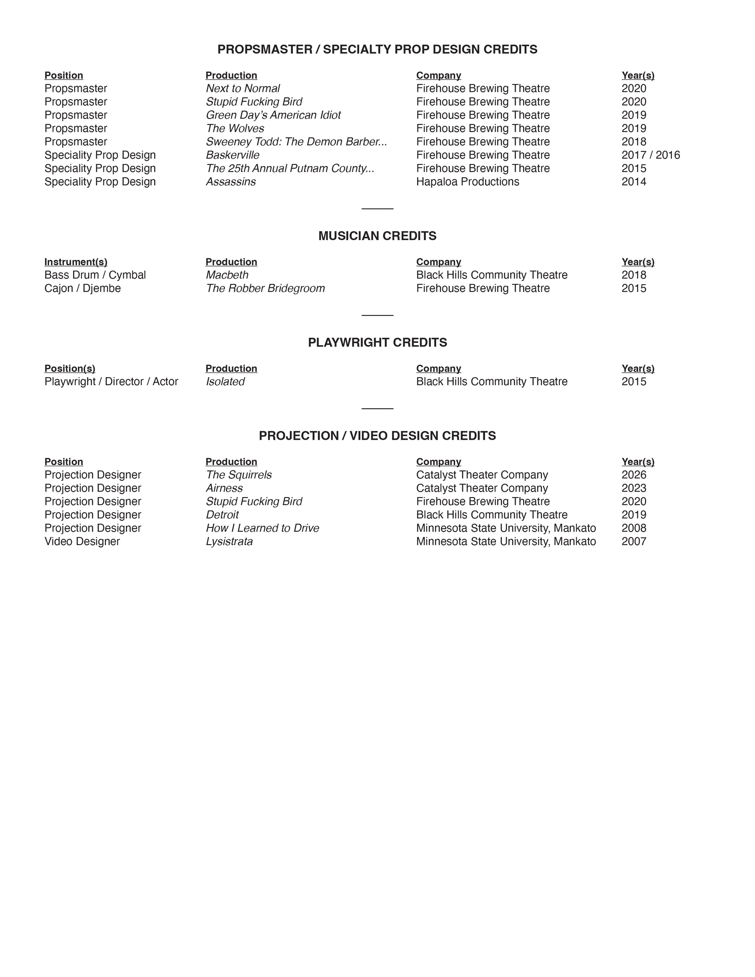 Theatre Credits